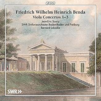 It is not exactly easy to find ones way around in the pages of Benda family history with its two Georgs, three Friedrichs, two Heinrichs – and more! This family of musicians from Bohemia came to Germany in 1742 at the request of Frederick the Great, King of Prussia (1712-86), and served at the court there for a century. The unknown Benda with whom we are concerned here was Friedrich Wilhelm Heinrich, the son of Franz Benda and nephew of Georg Benda. He was born in 1745 and died in 1814. Although he wrote operas, cantatas, and oratorios, he is best known for his instrumental compositions and for the concertos he wrote for various instruments. His talent as a gifted violist and violinist also made him a popular interpreter. The virtuoso passages in his three concertos for viola demonstrate his perfect mastery of the instrumental technique of the viola typifying his times. We have our soloist Jean-Eric Soucy to thank for the discovery of the viola concertos, and he in turn is grateful to the Edition Offenburg publishing company, which with its outstanding correction work has made available a wonderful gift for all violists. Friedrich Benda's viola concertos are beyond doubt magnificent additions to the viola repertoire on the same high level as Stamitz, Hoffmeister, and others. (By the way, Edition Offenburg has made the concertos available in two versions, one with piano and the other with orchestra.)
