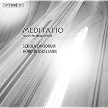 Growing out of concerts given by Schola cantorum Reykjavicensis and Hörður Áskelsson on All Soul’s Day, Meditatio presents a programme of expressive choral works which interpret grief and bereavement in the light of hope and comfort. Apart from Jón Leifs’ singularly serene Requiem, the composer’s response to the death of his daughter in 1947, all the pieces date from the past 35 years – from The Lamb by John Tavener from 1982 to Nunc dimittis (2015) by Sigurður Sævarsson, Icelandic composer as well as member of Schola cantorum. The ‘Canticle of Simeon’, as this song of praise from the Bible is also called, appears in two other settings on the disc – by Arvo Pärt and by Hreiðar Ingi who, like Sævarsson, sings bass in the choir. Four other Icelandic composers are represented on the disc, including the choir’s conductor Hörður Áskelsson and Þorkell Sigurbjörnsson, whose Heyr, himna smiður (‘Hear, Heaven’s creator’) – a setting of a thirteenth-century hymn – has gained recognition far beyond Iceland. Otherwise the choir performs music by the Latvian composer Ēriks Ešenvalds, the Scotsman James MacMillan – his A Child’s Prayer commemorates the victims of the school massacre in the Scottish town of Dunblane in March 1996 – and by Morten Lauridsen and Eric Whitacre, both from the U.S.A. Schola cantorum Reykjavicensis was founded in 1996 by Hörður Áskelsson, who remains its artistic director, and has appeared on a number of BIS recordings with music by Jón Leifs. The choir performs regularly in Reykjavík’s famous Hallgrímskirkja where the present recording took place.